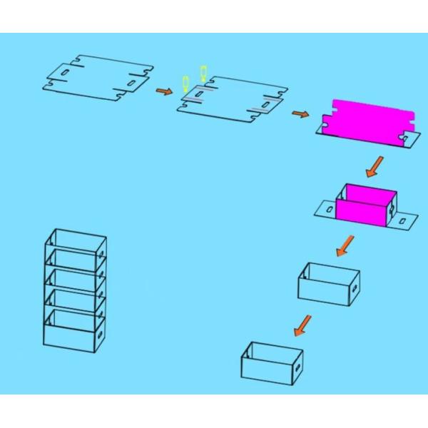 In addition to making traditional boxes, machine can also make other palletizing boxes, as well as the folding packaging boxes without glue, it is suitable for food packaging boxes; fruit/vegetable packaging boxes and other product boxes and etc.